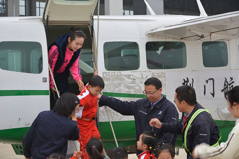 期間,荊門通航從經(jīng)理部、飛行管理部、機(jī)務(wù)工程部選派了三名工作人員,分別向孩子們講述了飛機(jī)的由來及發(fā)展過程;飛機(jī)飛行的原理;飛機(jī)(包括C208和Y5機(jī)型)組成部分、性能和用途;機(jī)組成員的構(gòu)成、分工;成為飛行員、機(jī)務(wù)維修人員應(yīng)具備的條件等航空知識(shí),孩子們聽得異常認(rèn)真,學(xué)到了很多平時(shí)的課堂上學(xué)不到的知識(shí)。初步了解了航空知識(shí)后,接下來便是孩子們期盼已久的體驗(yàn)環(huán)節(jié),荊門通航工作人員依次帶領(lǐng)孩子們到賽斯納208和運(yùn)五飛機(jī)上體驗(yàn)觀摩,進(jìn)一步加深了他們對飛機(jī)的理解和認(rèn)識(shí)。此外,“最美通航人”候選人盧慶新同志也親臨科普教育現(xiàn)場,為孩子們講述了他從事飛行的故事,將現(xiàn)場氣氛引入高潮,贏得了孩子們的陣陣掌聲。
