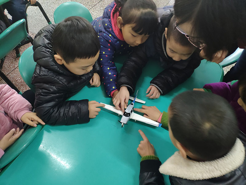 隨后科普人員拿出西銳飛機模型,向孩子們詳細(xì)講述了飛機結(jié)構(gòu)、性能、用途等航空知識。介紹完后科普人員分組讓孩子們仔細(xì)觀摩飛機模型,并回答孩子們提出來的各類問題。