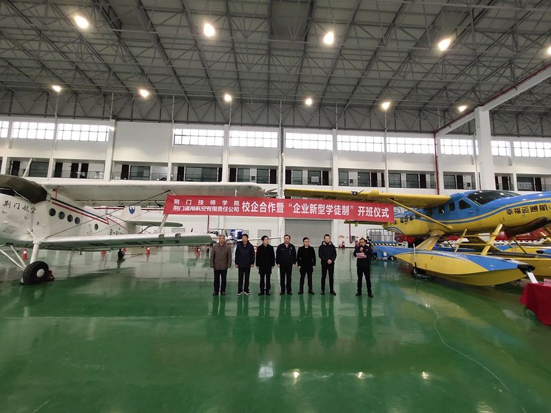 2019年11月27日,荊門(mén)通用航空有限責(zé)任公司(簡(jiǎn)稱(chēng)“公司”)、荊門(mén)技師學(xué)院校企合作簽約暨“企業(yè)新型學(xué)徒制”開(kāi)班儀式在公司圓滿(mǎn)舉行。荊門(mén)技師學(xué)院院長(zhǎng)許松、漳河新區(qū)社會(huì)事務(wù)局副局長(zhǎng)易斌等相關(guān)領(lǐng)導(dǎo)、人員出席了開(kāi)班儀式,公司領(lǐng)導(dǎo)及參訓(xùn)學(xué)員共三十余人參加了儀式。