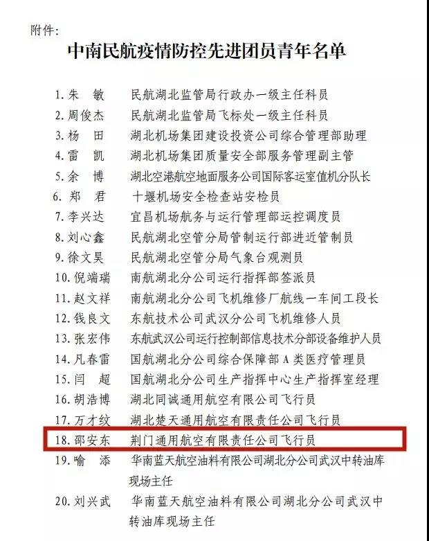 近日,從民航中南地區(qū)管理局獲悉,荊門通航飛行員邵安東同志被中南民航青年工作共建委員會評為“中南民航疫情防控先進(jìn)團(tuán)員青年”。這既是對邵安東同志的高度表揚,也是對航空人參與疫情防控工作的高度認(rèn)可。